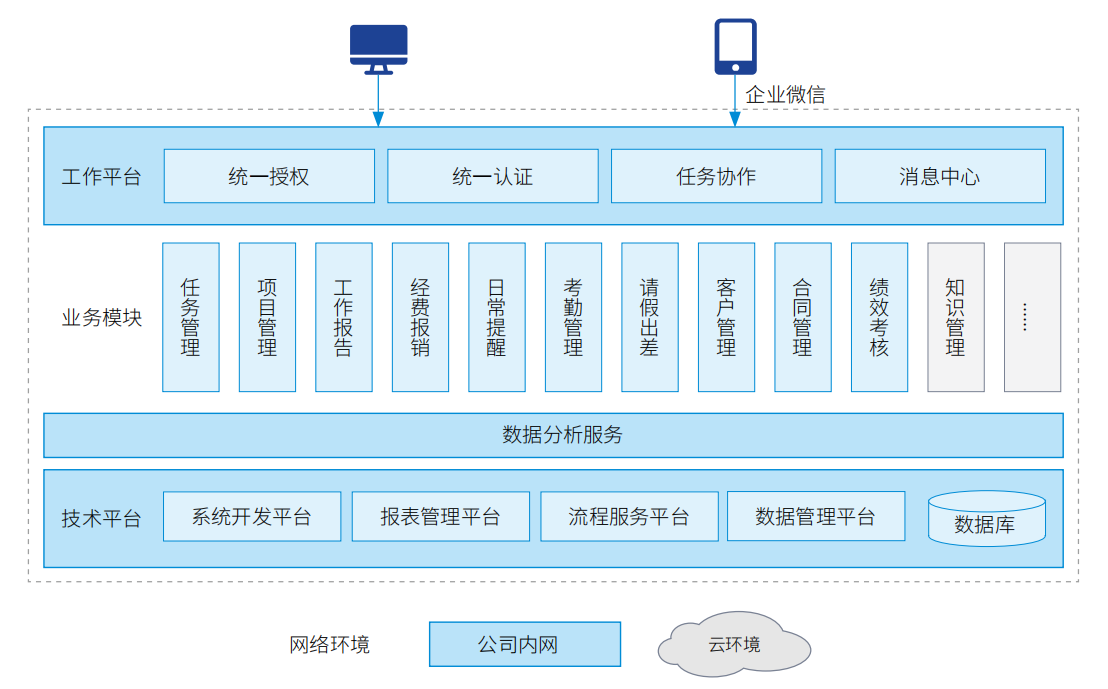 企業(yè)數(shù)字化運(yùn)營(yíng)平臺(tái)是公司研發(fā)的全新一代以業(yè)務(wù)和研發(fā)為驅(qū)動(dòng),以數(shù)據(jù)分析為抓手,從而促進(jìn)企業(yè)信息化、數(shù)字化管理,沉淀企業(yè)綜合知識(shí)積累,主要功能包括:日常辦公、客戶管理、任務(wù)管理、項(xiàng)目管理、人力資源管理、財(cái)務(wù)管理,知識(shí)管理、目標(biāo)管理等。